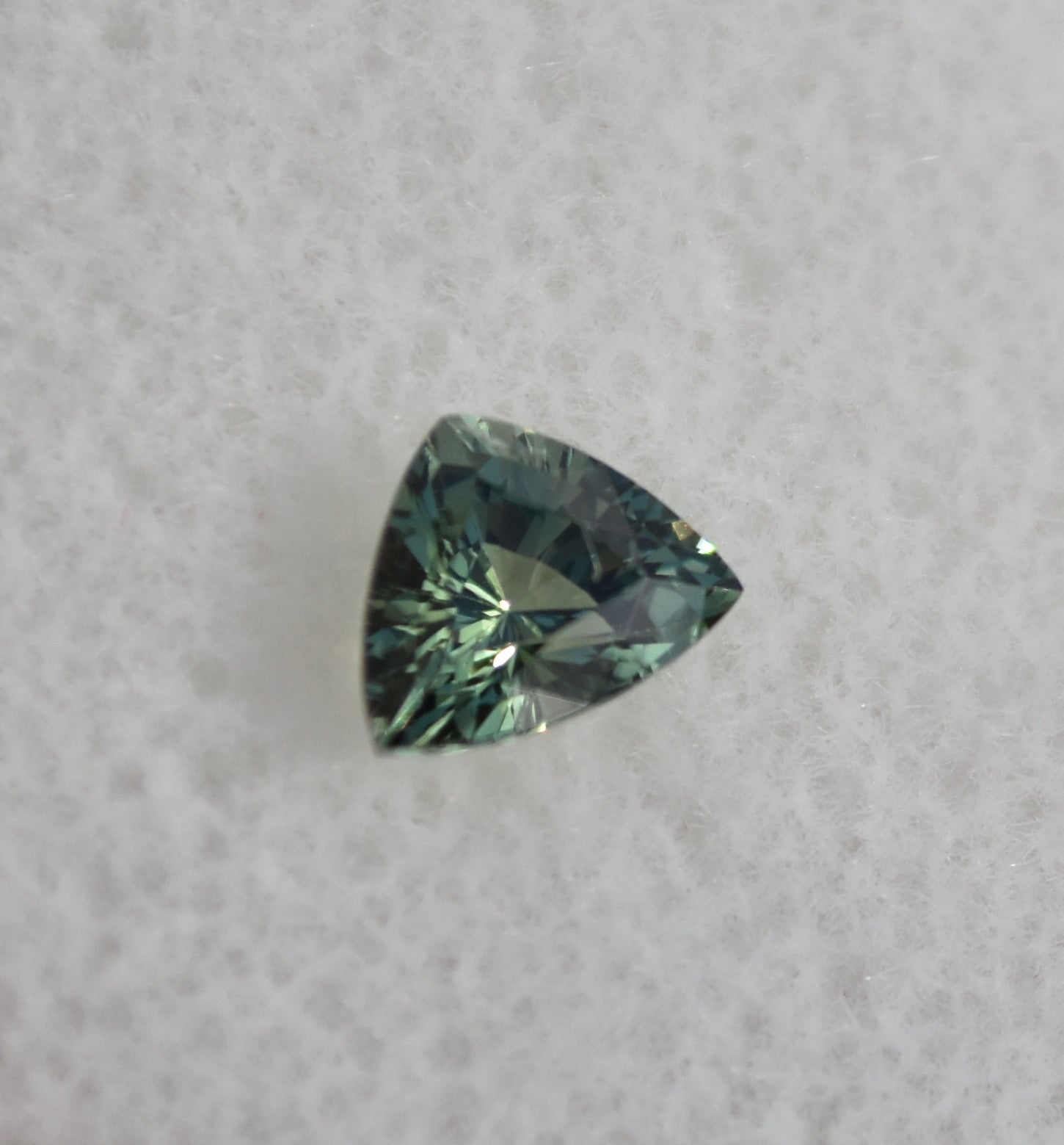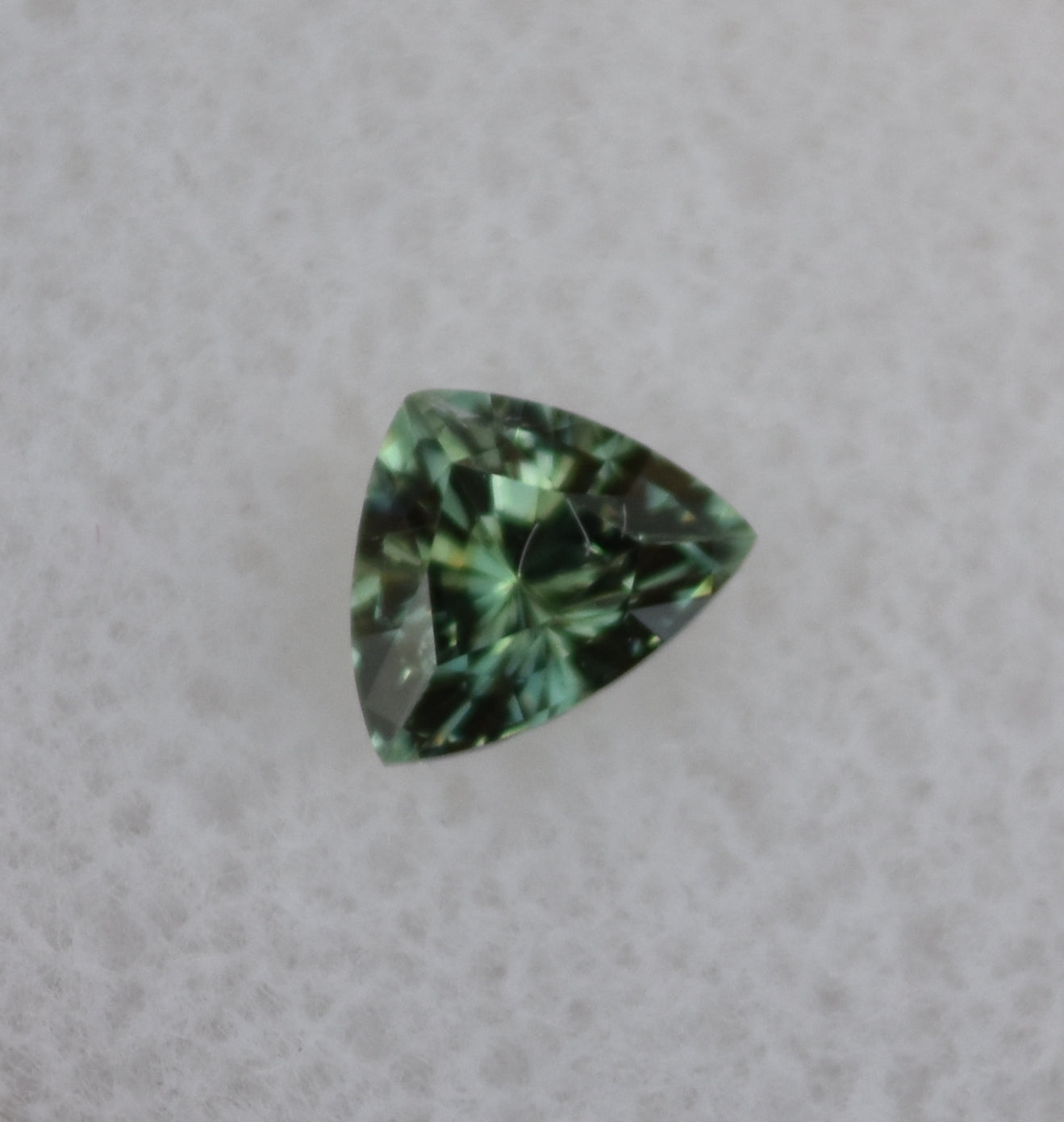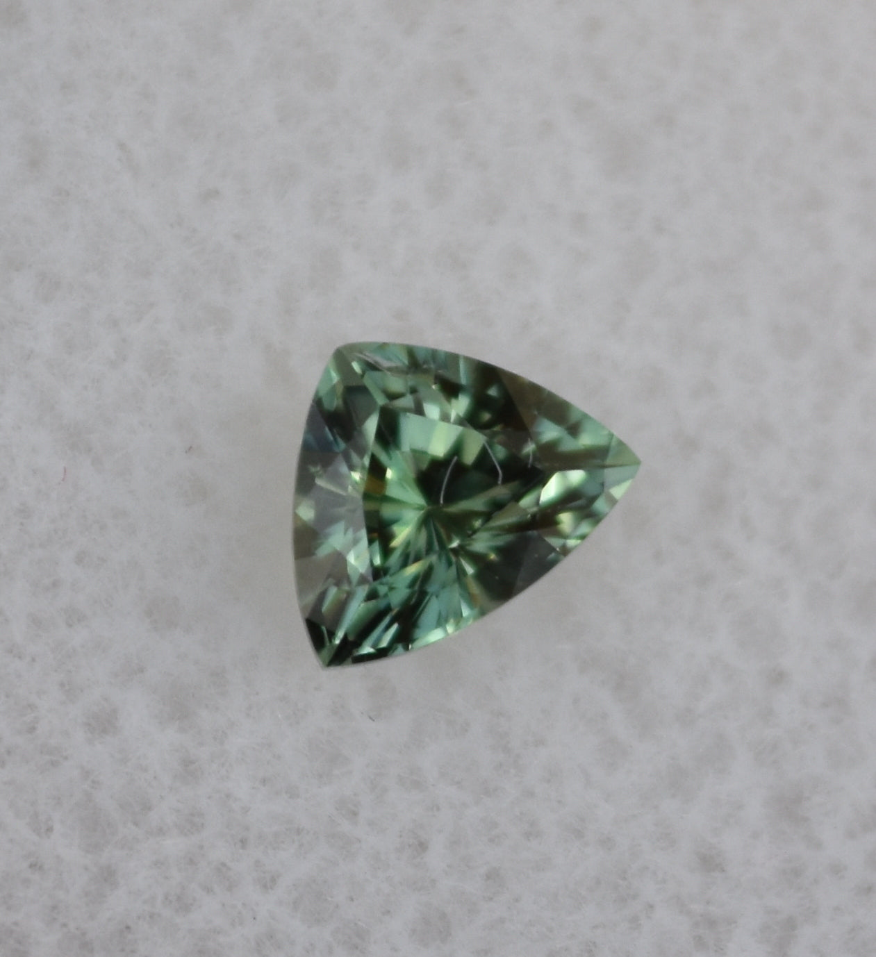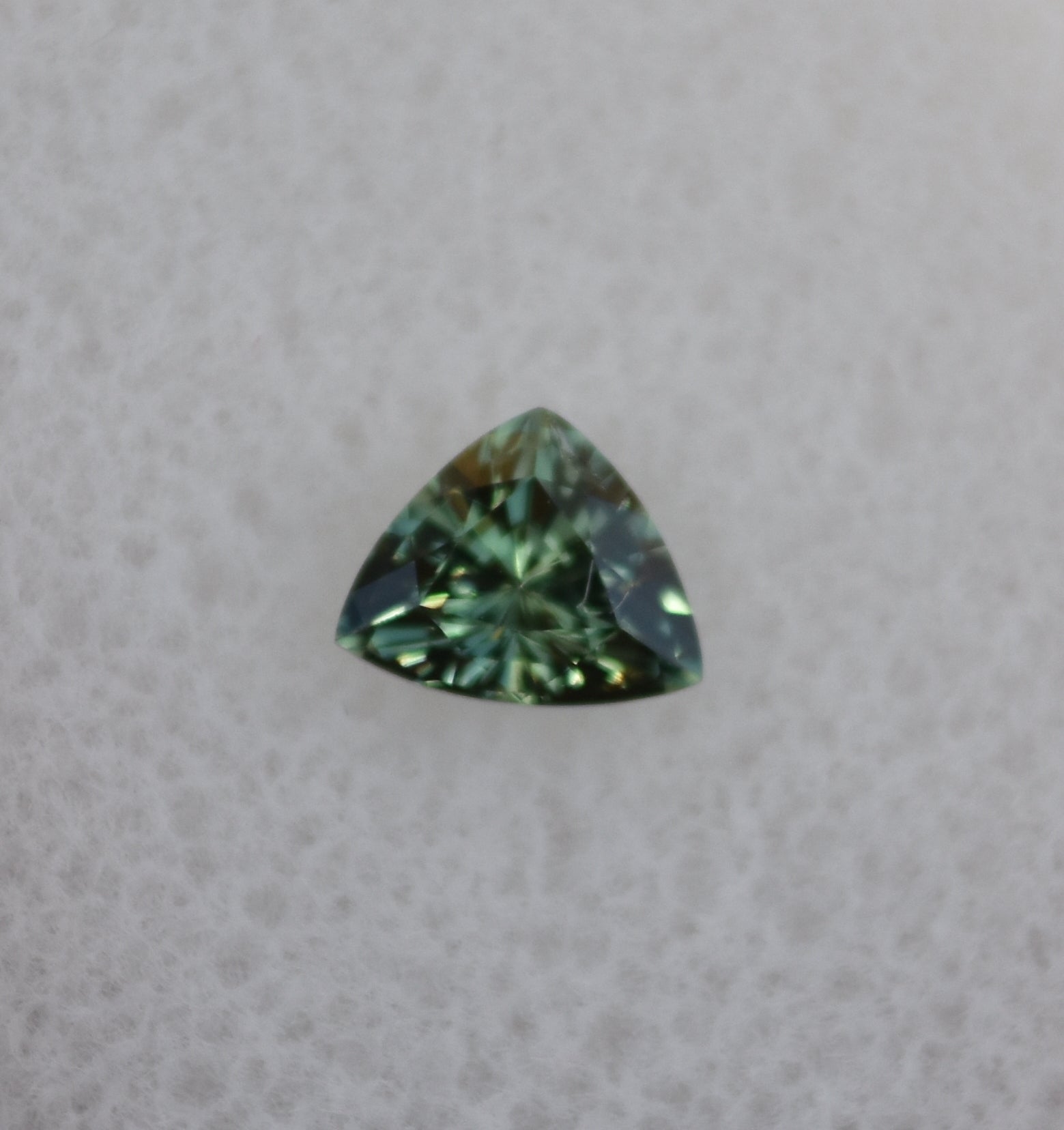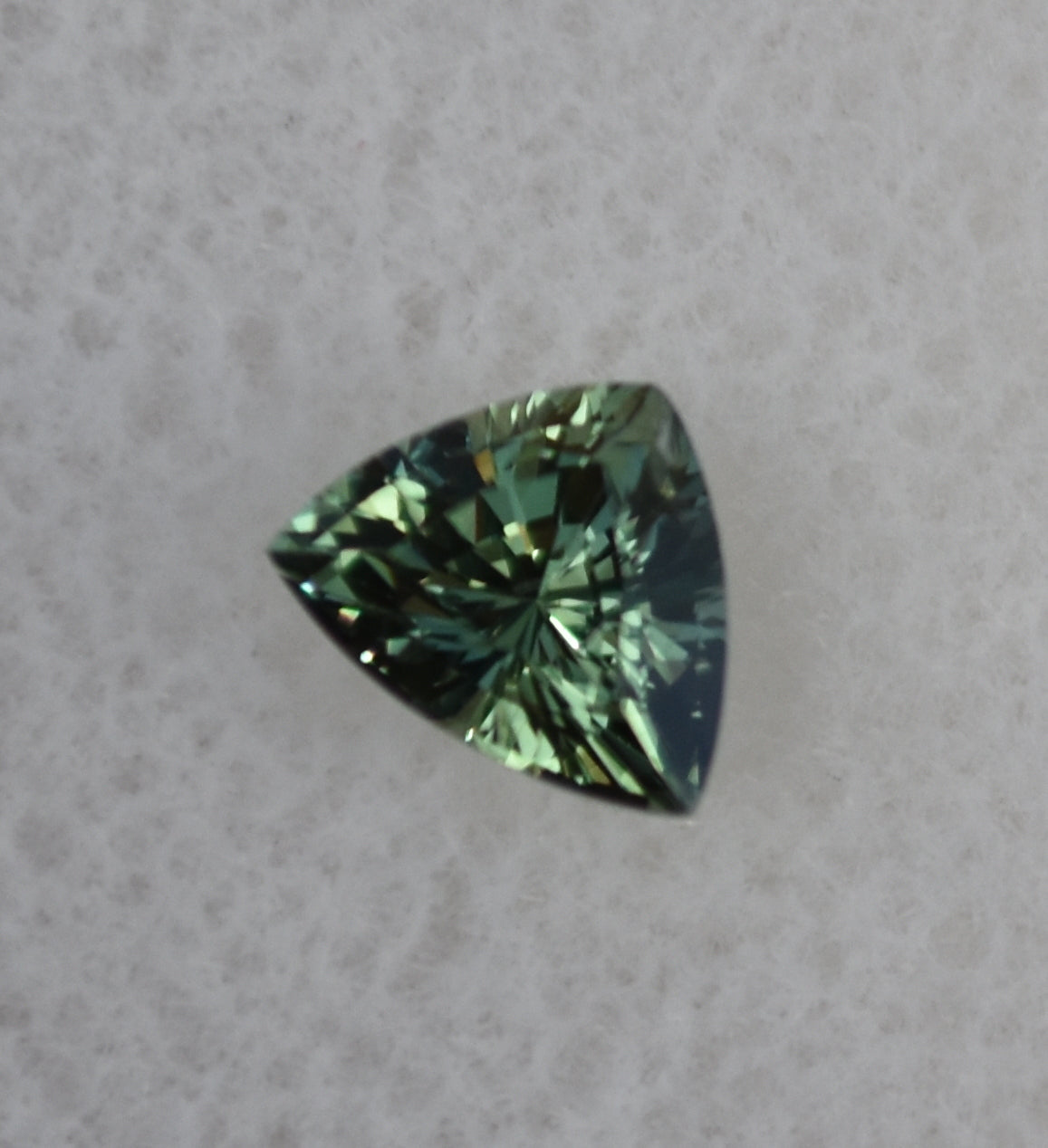 This gem is great!! It's a shifty little guy, that bounces between lime green and a blue-leaning light teal color. You'll notice the differences either between differring types of indoor light, or the difference between indoor and outdoor light, OR the difference between direct sun and shaded sun outdoors.