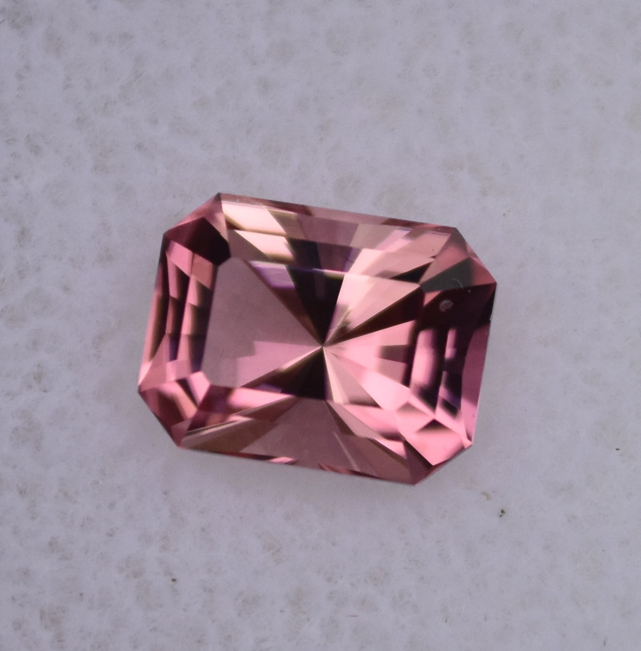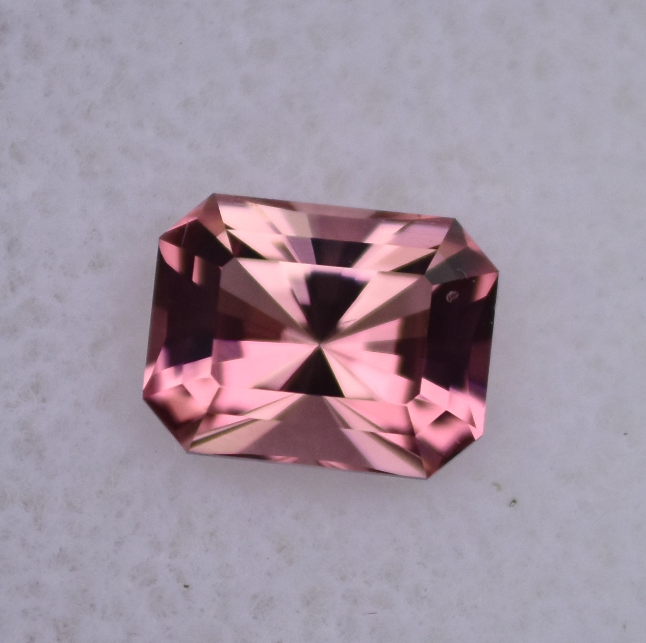 This peachy pink tourmaline is HOT! the AB axis and the C axis colors are both visible in the pattern.