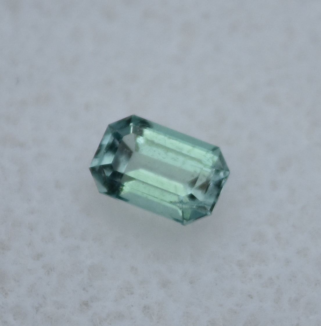 This chrome-bearing kornerupine gemstone is a cute little emerald cut. It's got good proportions, cutting, polish, and color; What's not to like?