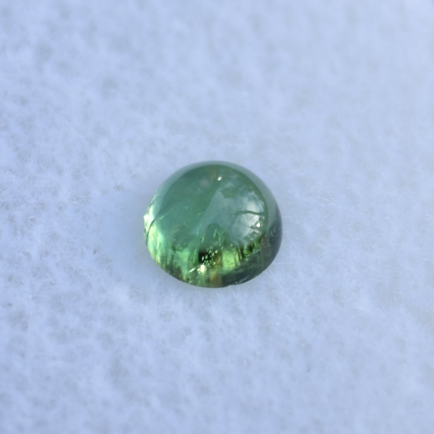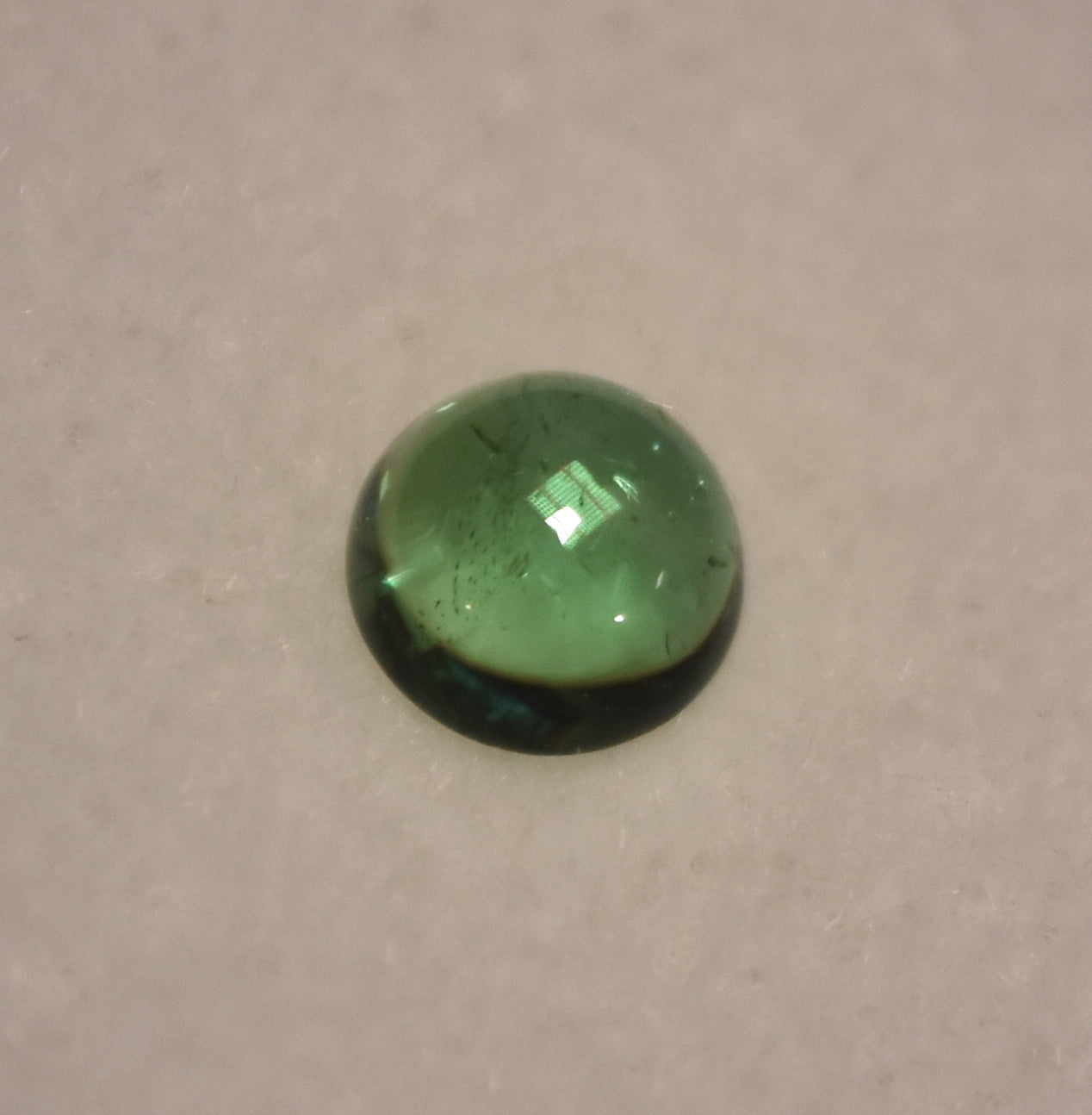 While the normal colors for vanadium kornerupine are usually lime green and leaf green, in this case, we have a gem whose dichroic colors are more like tsavorite or emerald on one axis, and teal on the other. In my experience, teal is usually associated with chrome content, but I could not find any.