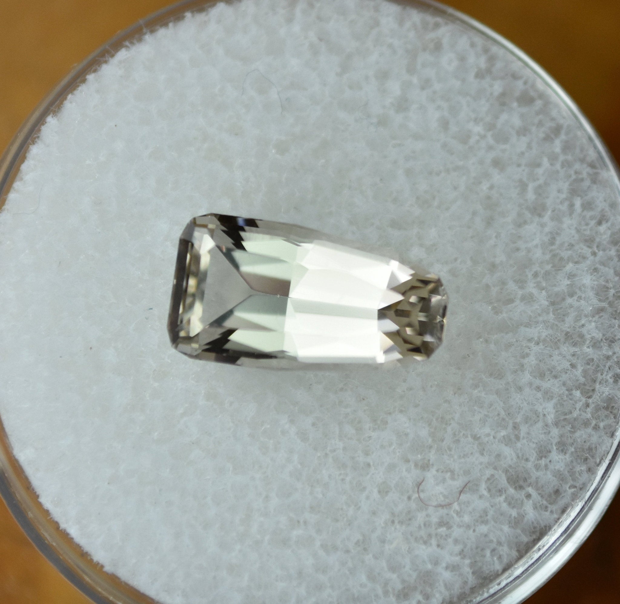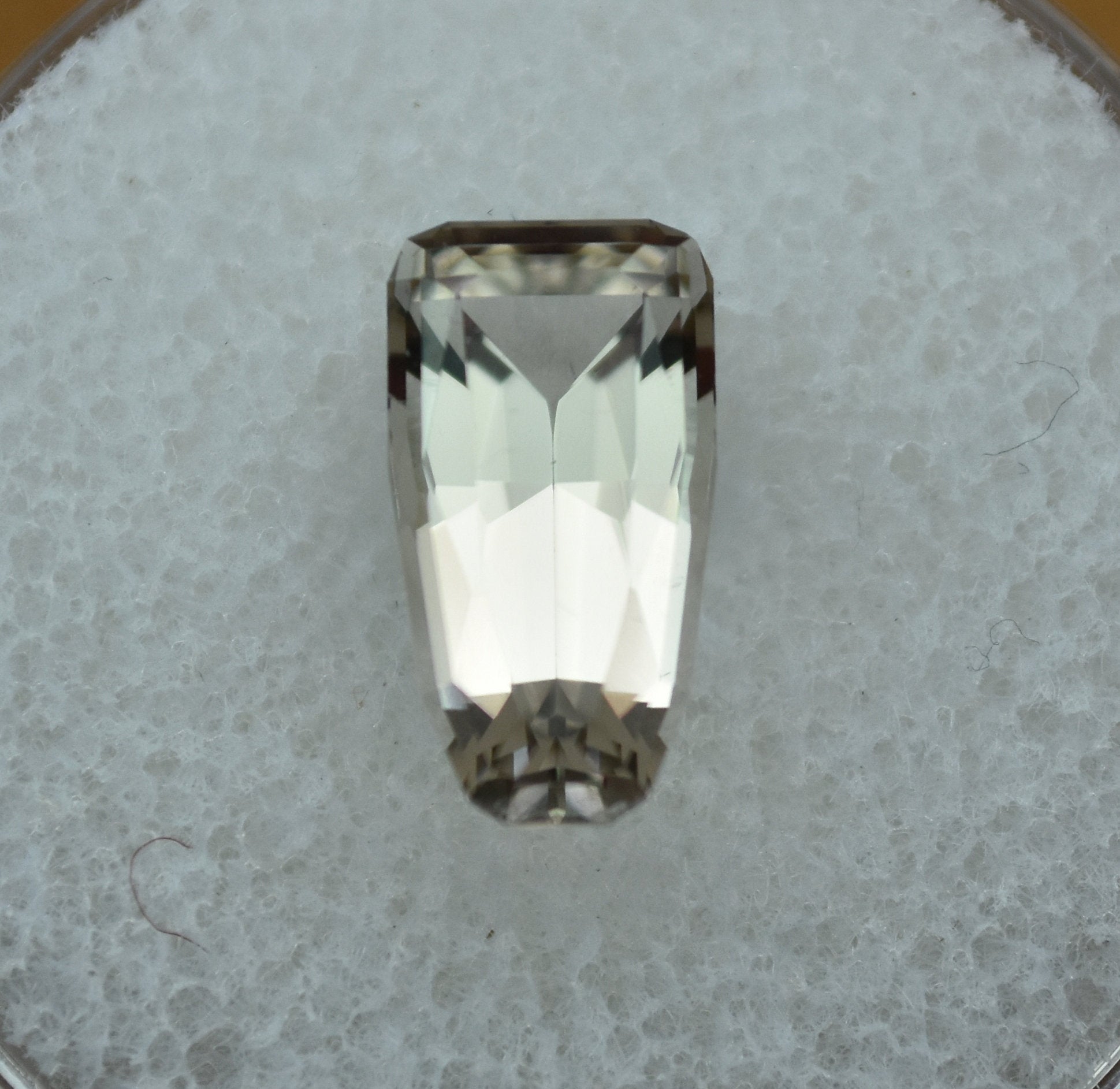 The cut was invented by me, on-the-fly, and has a lot of attention to detail. It really performs incredibly, and shines more than most quartz gems I've come across.